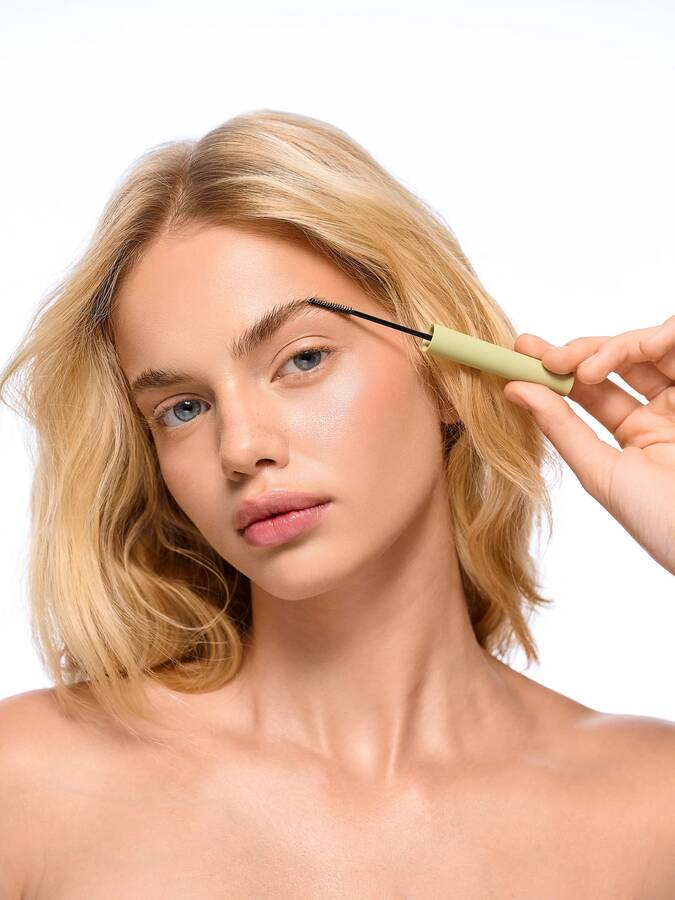 Нанесите небольшое количество геля на брови с помощью щеточки, придавая им необходимую форму. Оставьте до полного высыхания.